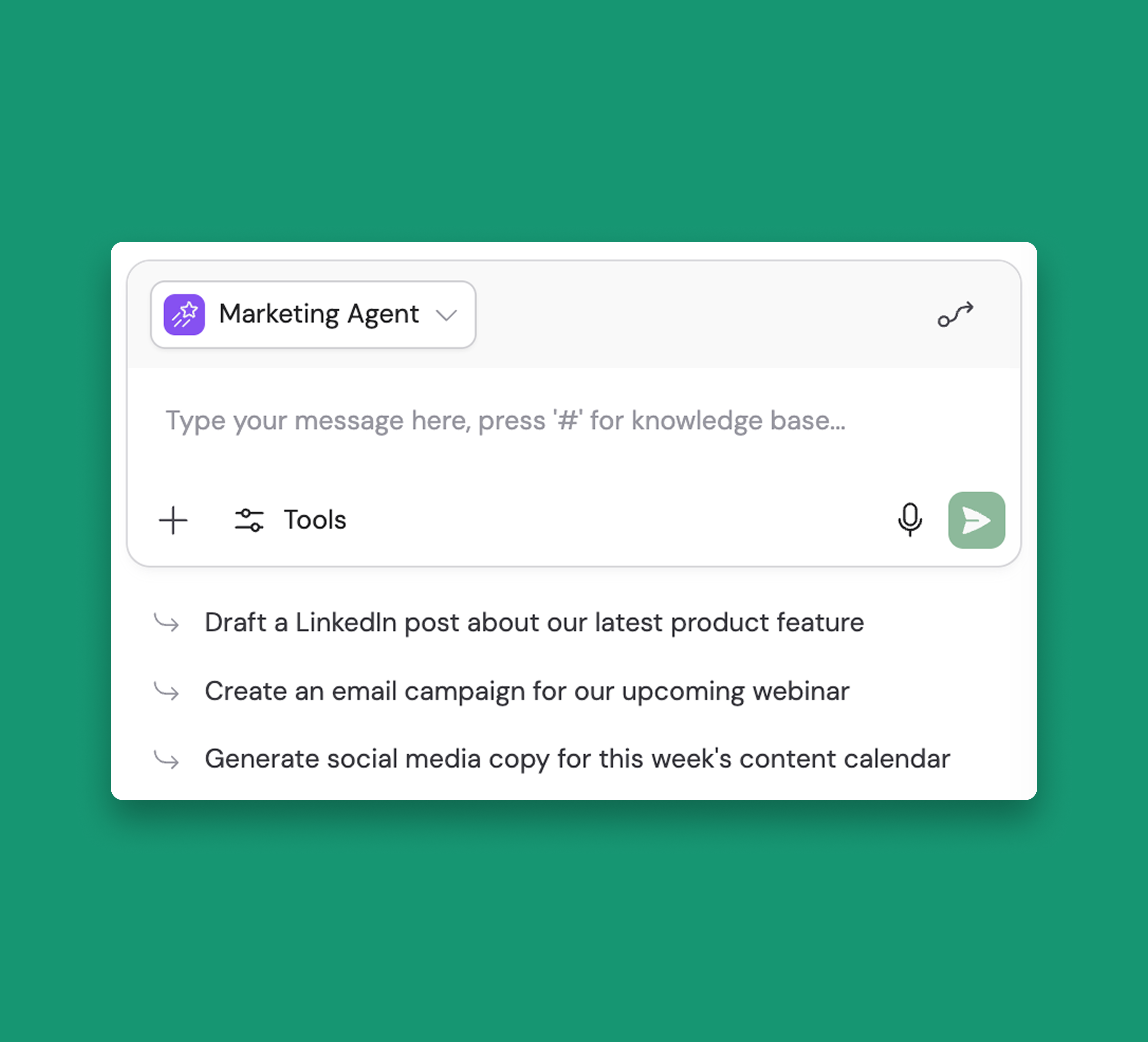 These prompts appear as clickable suggestions in a new chat, helping users understand what tasks your custom Agents can handle and making it easier for teams to discover and adopt Agent capabilities.