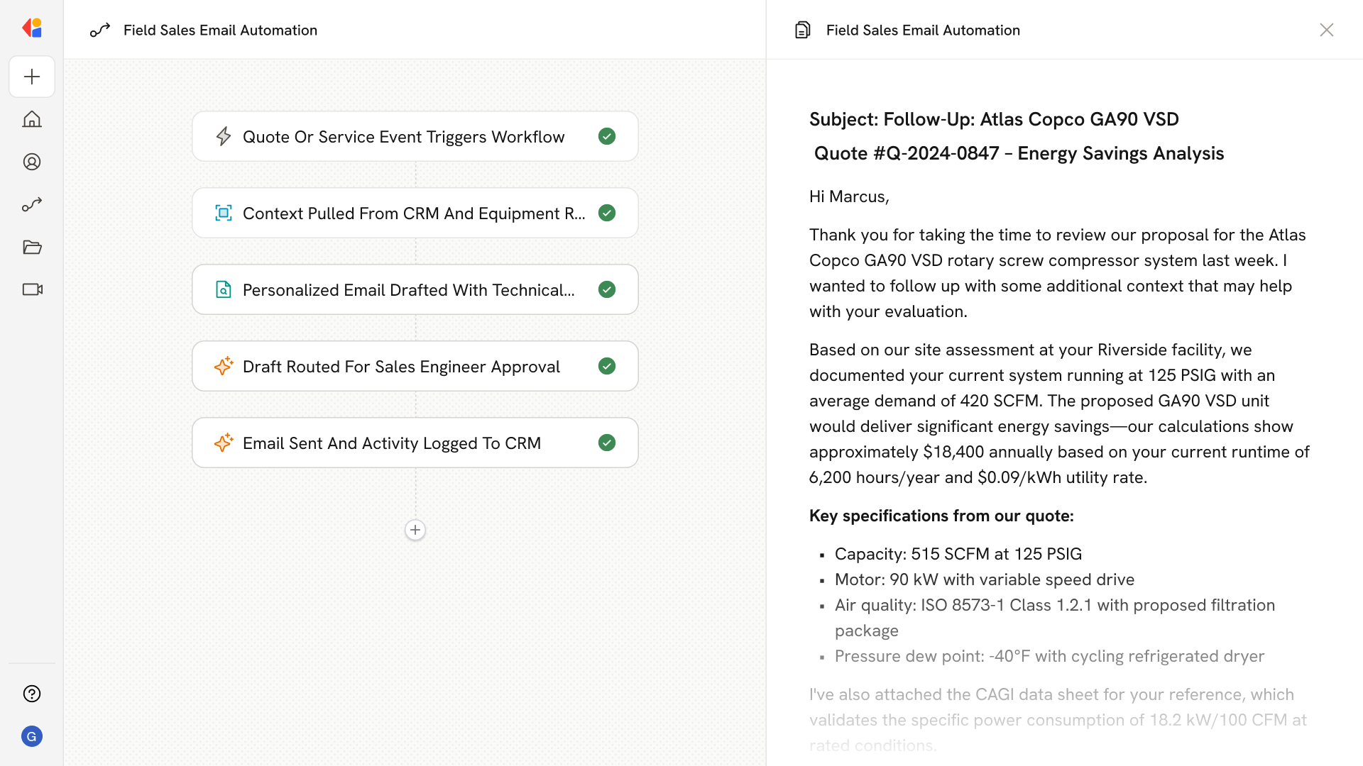 Automating Field Sales Follow-Up Emails for Compressed Air Equipment with AI